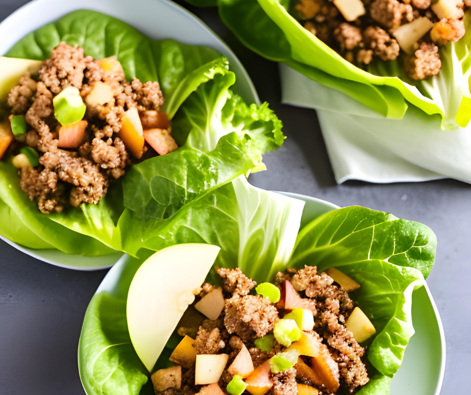 5. Place the raw romaine lettuce (or cabbage) on the serving dish and scoop the chicken into the center of the lettuce leaf.